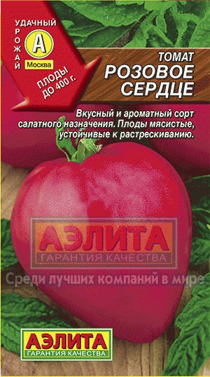 строения. Плоды сердцевидные, мясистые, слаборебристые, малиново-розовые, с небольшим количеством семян. Средний вес плода – 200-230 г, первые томаты достигают массы 400 г. Урожайность – 6-7 кг/м2. Сорт устойчив к ВТМ, кладоспориозу, альтернариозной пятнистости листьев,